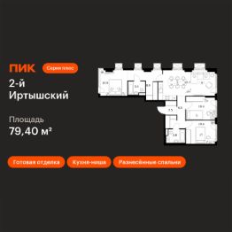 Продаётся 3-комн. квартира площадью 79,4 кв.м на 9 этаже 9 этажного дома (Корпус 1.6, Секция 6) проекта ПИК 2-й Иртышский. Светлый просторный подъезд на уровне земли, функциональная планировка, большие окна, c отделкой.