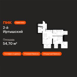 Продаётся 2-комн. квартира площадью 54,7 кв.м на 2 этаже 26 этажного дома (Корпус 1.5, Секция 5) проекта ПИК 2-й Иртышский. Светлый просторный подъезд на уровне земли, функциональная планировка, большие окна, c отделкой.