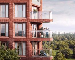 Лобби выполнены в стиле современного минимализма. В отделке использованы долговечные материалы с выразительной фактурой: кирпич сочетается с мраморным бесшовным полом из наливного материала терраццо, гладкой плиткой и стеклом. Для автовладельцев будет доступен подземный паркинг.