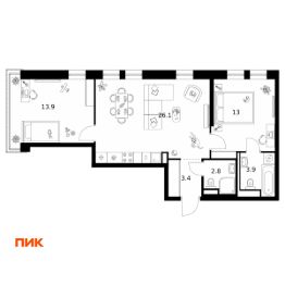 Продаётся 2-комн. квартира площадью 63,1 кв.м на 2 этаже 37 этажного дома (Корпус 1.1, Секция 1) проекта ПИК Москворечье. Светлый просторный подъезд на уровне земли, функциональная планировка, большие окна, c отделкой.