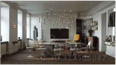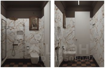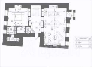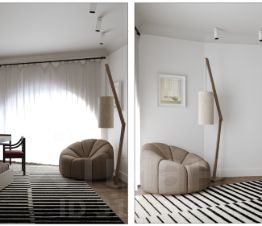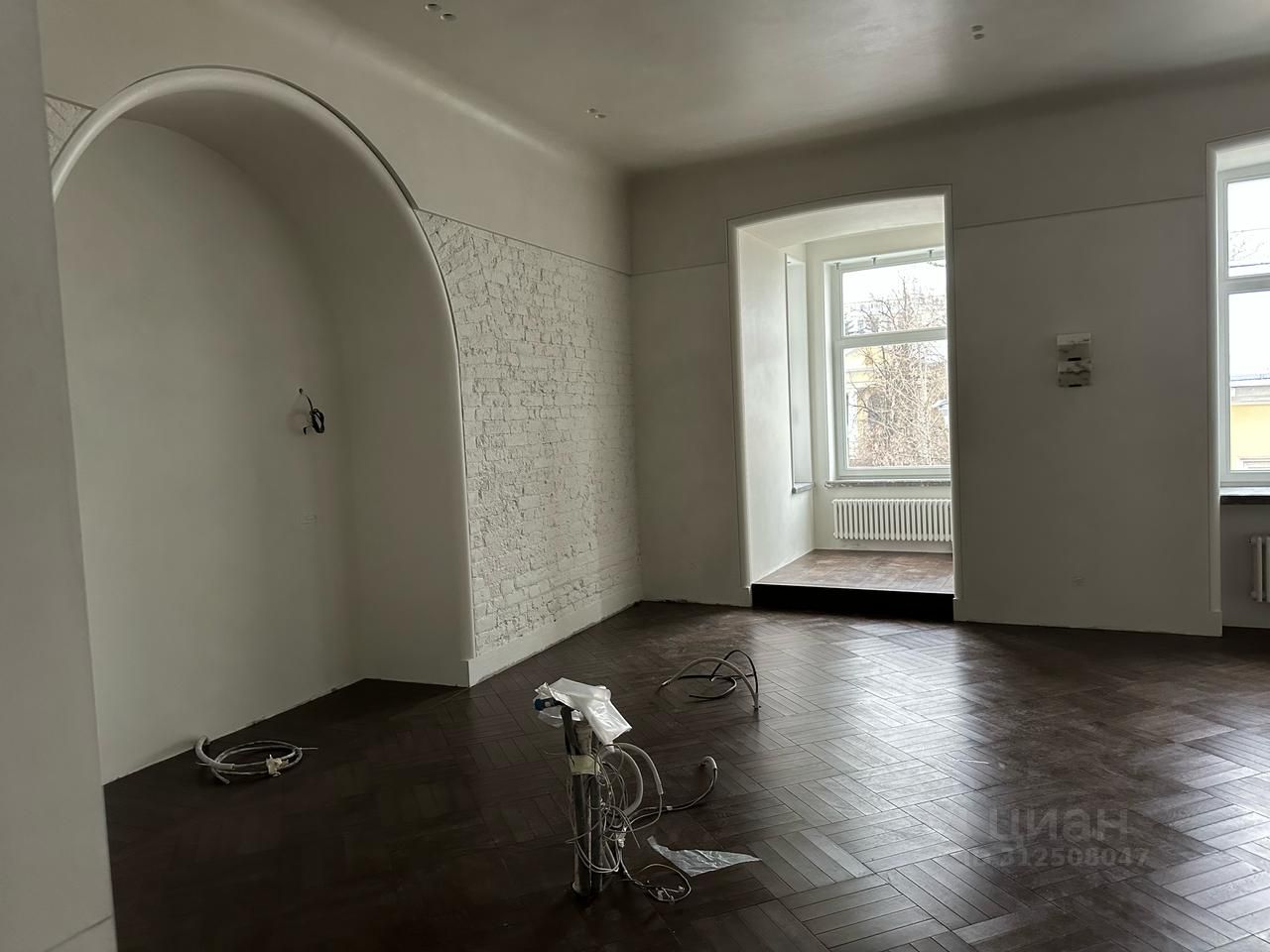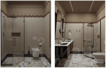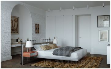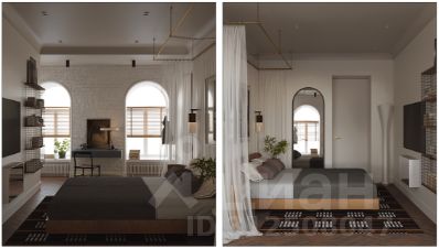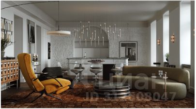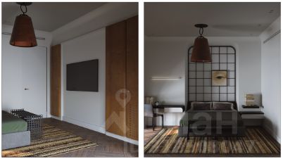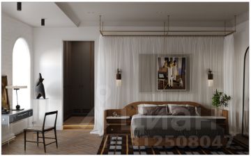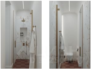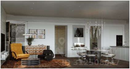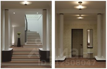Двухуровневая многокомнатная квартира расположена на 2-м и 3-м этажах здания. На первом этаже расположен "офис" - отдельная квартира для деловых встреч и работы. 2-й этаж. На втором этаже расположены: парадная прихожая (площадью 20,98 м2) с гардеробной комнатой (площадью 6,11 м2) и три гостевые спальни (площадью от 19 м2). В каждой спальне есть собственный санузел с душевой кабиной (площадью от 2,57 м2). Также на этаже расположен технический блок, включающий в себя постирочную (площадью 7,9 м2) и с/у (площадью 4,48 м2), который может быть использован для персонала. 3-й этаж. На третьем этаже расположены: холл (площадью 21,30 м2) с гостевым санузлом (площадью 1.98 м2), просторной гостиной/кухней (площадью 62,56 м2), мастер-спальня (площадью 30,16 м2) со своей гардеробной (площадью 4,06 м2) и санузлом (площадью 10,29 м2). Лестница. Сообщение внутри квартиры, между вторым и третьим этажом здания, осуществляется по внутренней лестнице. Офис. Помимо квартиры, расположенной на втором и третьем этажах площадью 256,42 м2, также есть офисное пространство на первом этаже здания площадью 47,7 м2 (продаётся отдельно). Офисное пространство состоит из кабинета (24,3 м2), коридора с кухней и санузлом (11,5 м2) и переговорной (11, 9 м2). История дома. Здание по адресу: г. Москва, Борисоглебский переулок. Дом 8, строение 1 построено в 1900 году по проекту архитектора Родионова С.К. Здание, построенное в стиле эклектики, стало собственным доходным домом архитектора, а в последствии ценным градоформирующим объектом города, получившим у горожан название Задние с кариатидами. Строение расположено в пяти минутах ходьбы от улицы Новый Арбат в окружении музеев, памятников и других достопримечательностей Москвы. В разное время в доме жили выдающиеся люди своего времени, например, известный математик Московского университета Егоров Д.Ф., а по соседству поэтесса Марина Цветаева, где сейчас находится её музей. Дизайн интерьера Основная идея, воплотившаяся в дизайне интерьера апартаментов и офиса это связь прошлого и настоящего. Архитекторам удалось сохранить старую кирпичную кладку начала двадцатого века, добавить элементы мебели и перфорированных панелей индивидуального изготовления дизайна 60-х -70-х годов двадцатого века, соеденив все современными материалами. В апартаментах сохранена максимальная высота потолка (выше 3м) для исторического здания. Благодаря арочным окнам, а также мягким, пастельным тонам стен все помещения очень светлые в них приятно и комфортно находится. В данных апартаментах предпочтение отдавалось натуральным материалам мрамору, дереву, метлахской плитке. Декоративная роспись стен и потолка на втором этаже квартиры (3-м этаже здания) выполнена профессиональными художниками в технике Гризайль, что позволило добиться эффекта легкой дымности, нуара. Под разным светом, в течении дня, эти стены выглядят по-разному. Применение техники Гризайль позволило связать воедино все сложные и разные элементы интерьера, объединив их в общую концепцию.
