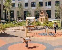 В проекте запланированы также два детских сада, две школы и паркинг. На первых этажах откроются магазины, кафе и другие сервисы — чтобы купить кофе и свежий хлеб к завтраку, можно будет просто спуститься на лифте. В уютных дворах-парках появятся места для отдыха, детские площадки, кофейни и зоны отдыха.