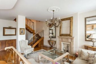 На первом уровне спланирована просторная кухня-гостиная с обеденной зоной, гостевой санузел, гардеробная, прихожая. Планировка второго уровня, включает мастер-спальню с гардеробной и ванной комнатой, коридор с библиотекой. В квартире установлены подогрев полов, система вентиляции и кондиционирования Daikin. Окна квартиры выходят во двор, что создает постоянную атмосферу тишины и покоя. Предусмотрено машиноместо в подземном паркинге.