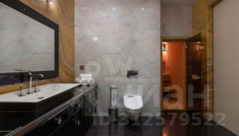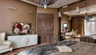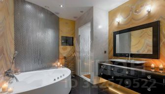 Второй блок — приватный: мастер-спальня с кроватью king size Fendi, с большим полукруглым балконом, гардеробной и ванной комнатой, отделанной итальянским ониксом и белым мрамором, оснащенной сауной, будуаром с туалетным столиком и зеркалом Svarovski, большой гардеробной и балконом.