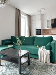 В квартире выполнен дизайнерский ремонт. Просторная кухня-гостиная идеально подходит для семейных обедов и встреч с друзьями. Санузел совмещенный. Отдельная гардеробная зона и постирочная комната. Спальня с лоджией, где можно обустроить уютное место для отдыха.