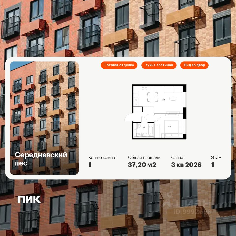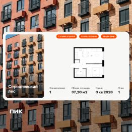 Продаётся 1-комн. квартира площадью 37,2 кв.м на 1 этаже 9 этажного дома (Корпус 4.3, Секция 3) проекта ПИК Середневский лес. Светлый просторный подъезд на уровне земли, функциональная планировка, большие окна, c отделкой.