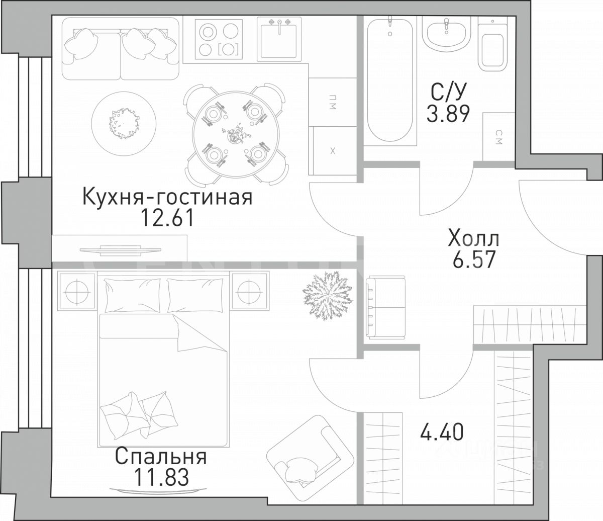Лучшая планировка в ЖК: отдельная спальня, кухня-гостиная, сан. узел.