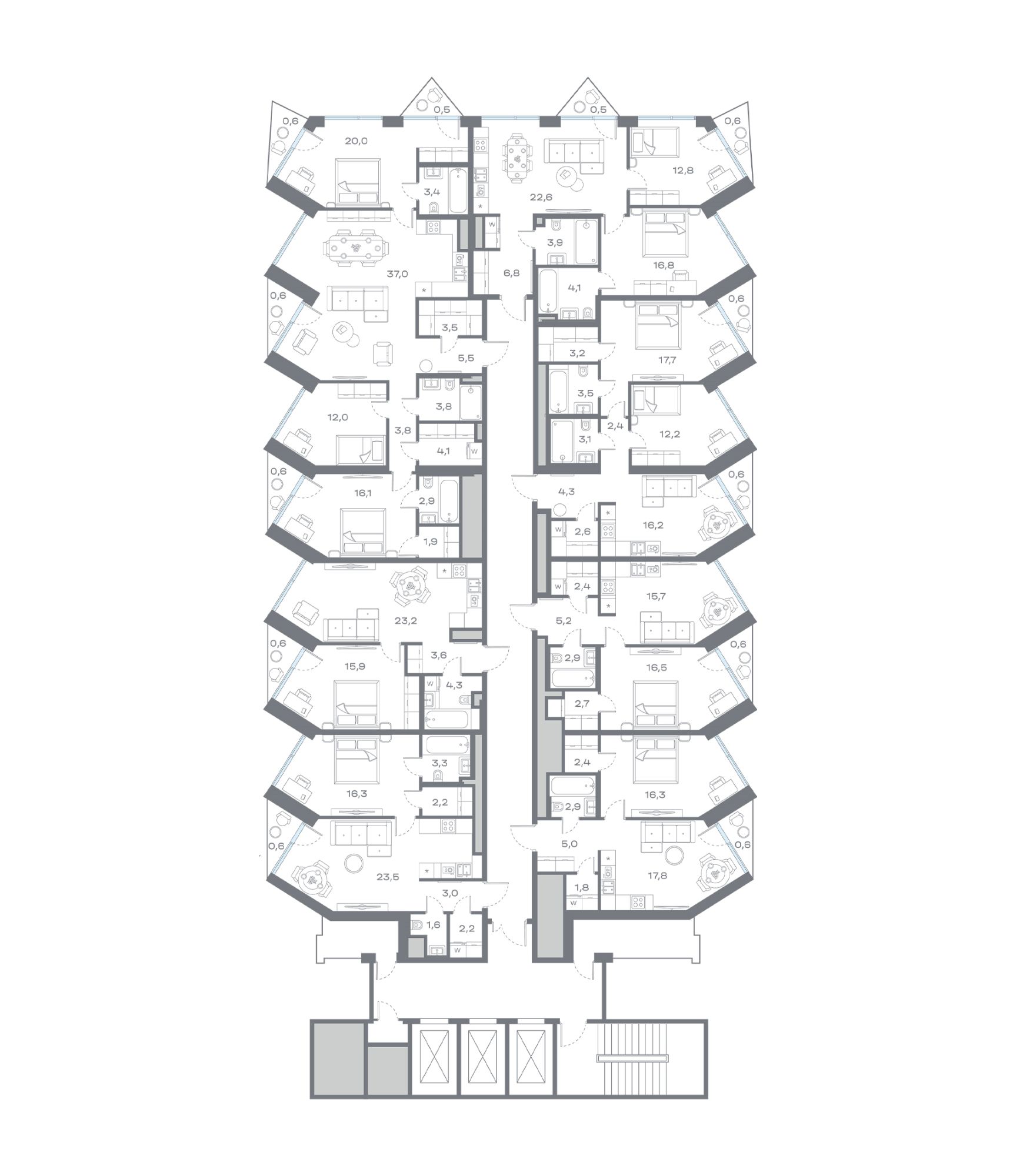 • 135 квартир и 7 пентхаусов