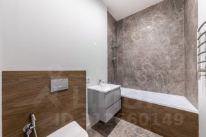 В санузле установлена вся сантехника, тумбочка под раковину, оборудован теплый пол.