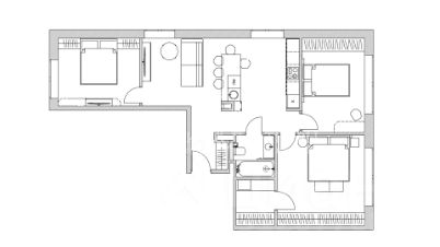 Функциональной планировкой предусмотрена гостиная, совмещенная с кухней-столовой, мастер-спальня с гардеробной, 2 спальни, ванная комната.