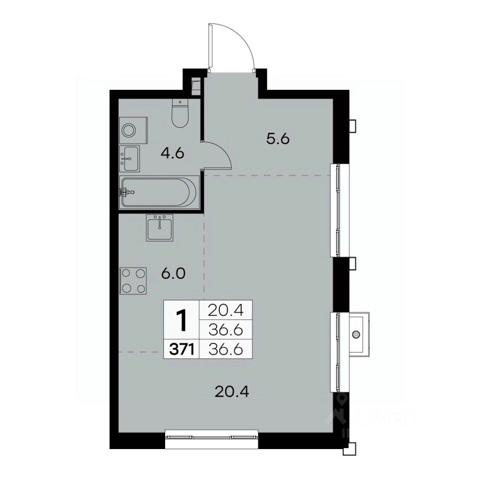 Общая площадь36,6 м²