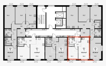Функциональная планировка: просторная кухня-гостиная 16.9 м² с кондиционером, спальня 10,1 м² и совмещенный санузел 4 м². 2 лифта (1 грузовой, один пассажирский), есть многоуровневый паркинг.
