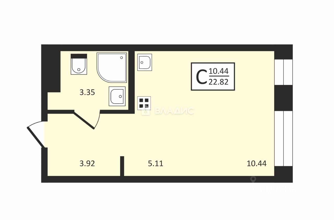 - Общая площадь 22.82 м²;
