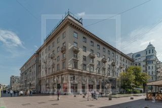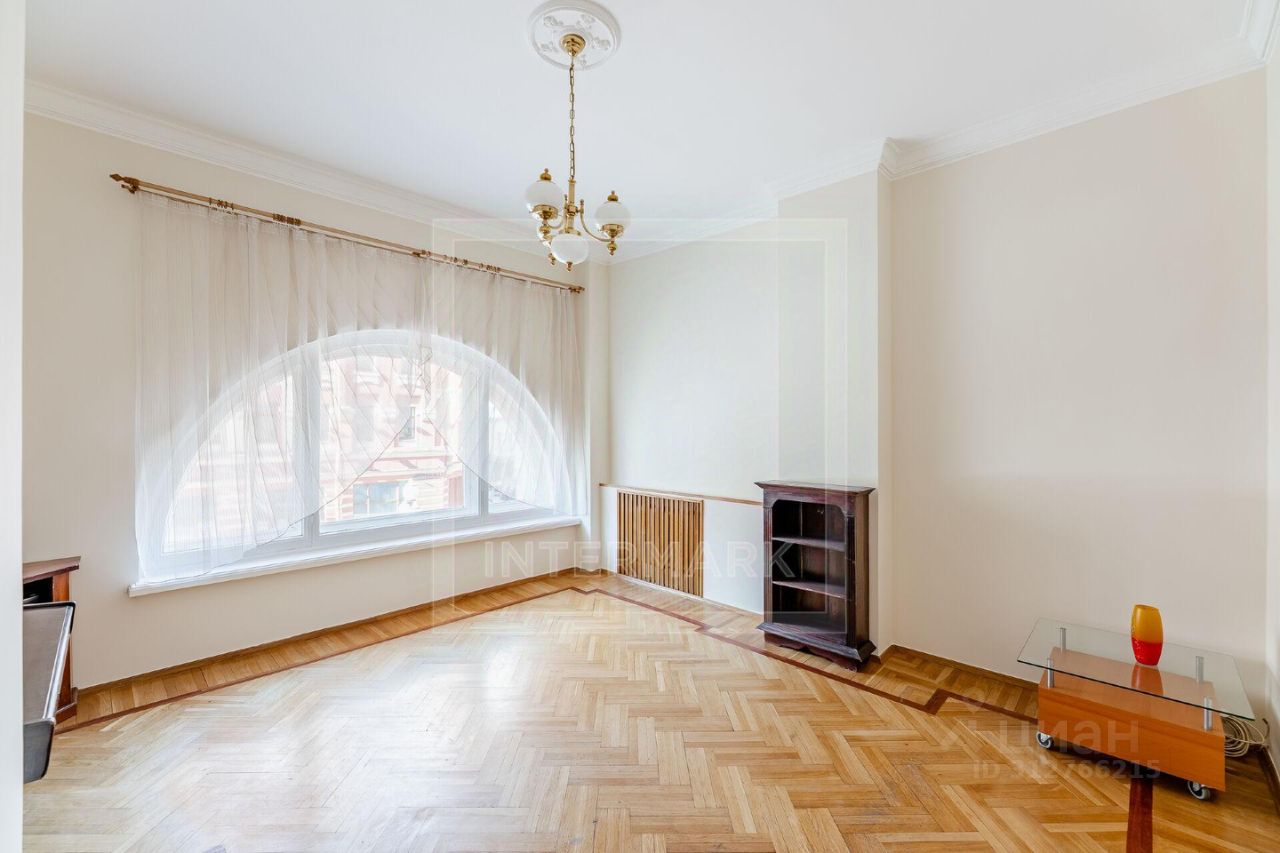 ID 64691. Эксклюзивно в компании INTERMARK. Светлая трёхкомнатная квартира в известном фасадном особняке по проекту Л. Полякова для советских номенклатурных работников и деятелей искусства на углу улицы Арбат и Плотникова переулка.