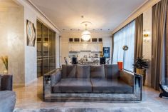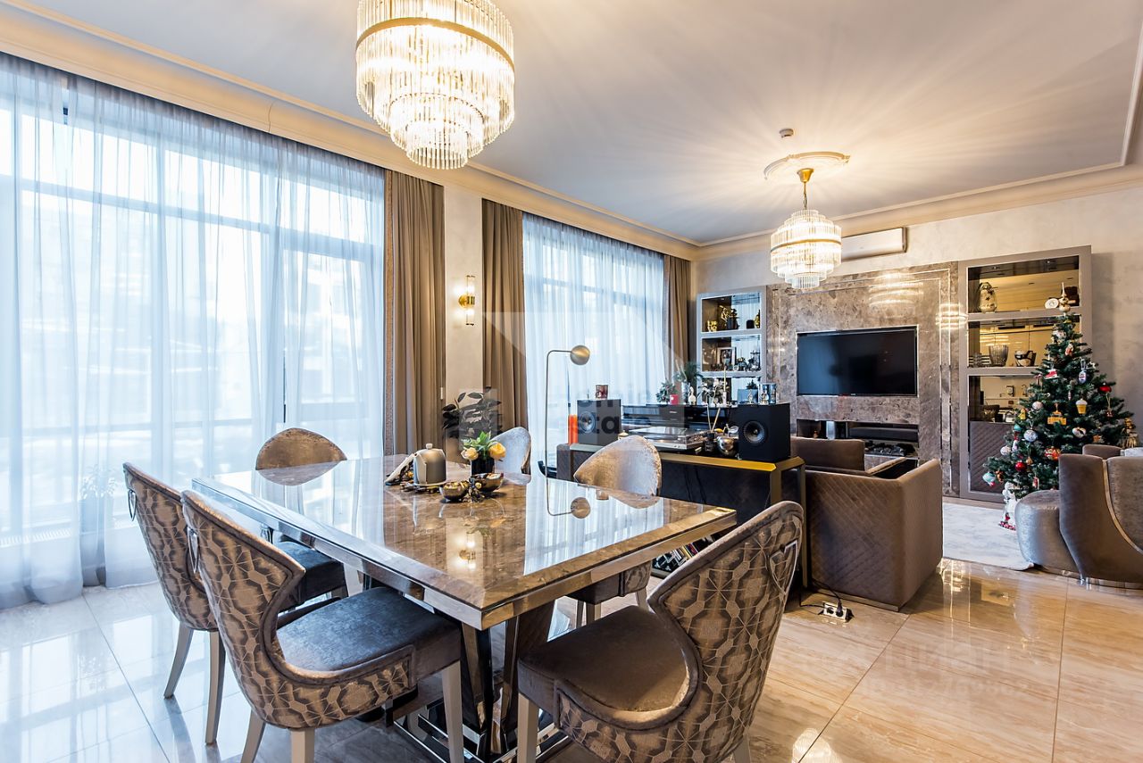 Просторная кухня-гостиная с панорамным остеклением и видом в сторону тихого двора комплекса. Две мастер-спальни со своим санузлом и гардеробной, гостевой санузел, гардеробная при входе. Апартаменты оснащены всей необходимой мебелью и техникой. Дизайнерский ремонт.