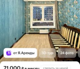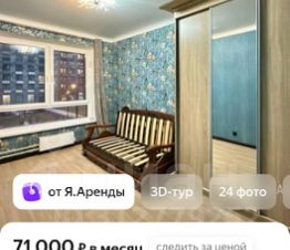 Продается евро-трёшка квартира в одном из зелёных районов Москвы. Квартира расположена на полуострове на берегу Москва-реки. Общая площадь квартиры составляет 59 кв. м, жилая площадь — 22 кв. м, а кухня — такая же просторная, 22 кв. м. Квартира находится на 2-м этаже 25-этажного дома. Дом был построен в 2021 году и выполнен из качественных панельных материалов. Высота потолков — 2.7 метра.