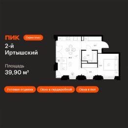 Продаётся 1-комн. квартира площадью 39,9 кв.м на 2 этаже 16 этажного дома (Корпус 1.4, Секция 4) проекта ПИК 2-й Иртышский. Светлый просторный подъезд на уровне земли, функциональная планировка, большие окна, c отделкой.
