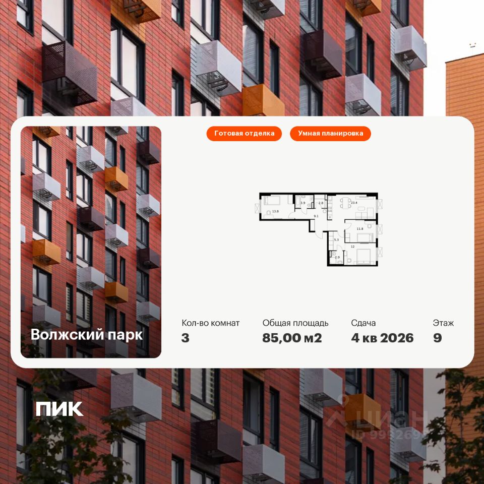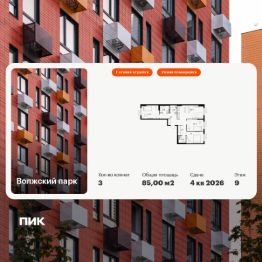 Продаётся 3-комн. квартира площадью 85 кв.м на 9 этаже 24 этажного дома (Корпус 6.2, Секция 2) проекта ПИК Волжский парк. Светлый просторный подъезд на уровне земли, функциональная планировка, большие окна, c отделкой.