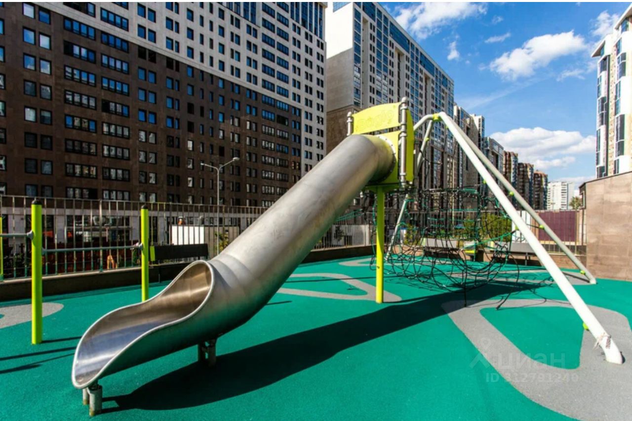 Дом с огороженной по периметру территорией, вход на которую контролирует круглосуточная охрана. На территории есть детская площадка.