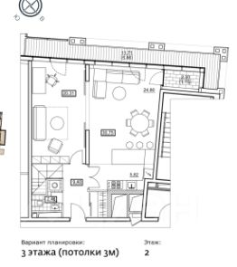 Квартира уникальная по планировке, расположена на последнем этаже, с потолками 9 м, вторым светом и отличным видом на город.