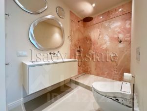 В каждом санузле два умных унитаза с функцией подогрева , подсветки, регулировки температуры гигиенического душа. Также в каждом санузле слэбы из натурального мрамора. Подоконники из оникса и травертина. Высокие потолки (3,1 метра) создают ощущение простора и свободы. Прекрасный вид, окна смотрят на реку.
