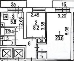 Комната 1: 20,6 м2.