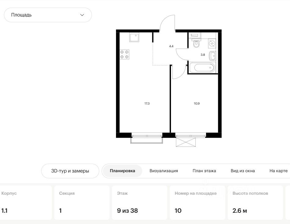 Площадь кухни17,3 м²