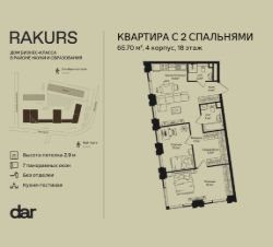 Продаётся 2-комнатная квартира 65.70 м² в жилом комплексе Ракурс. Квартиру отличают панорамное остекление, потолки 2,9 м, улучшенная шумо и воздухоизоляция. Дом сдаётся в 1 квартале 2028 года, продажи проходят через эскроусчета. Подземный паркинг, коворкинг, закрытая благоустроенная территория с фонтаном и артобъектами. Гибкие условия покупки.