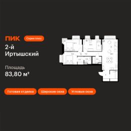Продаётся 3-комн. квартира площадью 83,8 кв.м на 20 этаже 26 этажного дома (Корпус 1.5, Секция 5) проекта ПИК 2-й Иртышский. Светлый просторный подъезд на уровне земли, функциональная планировка, большие окна, c отделкой.