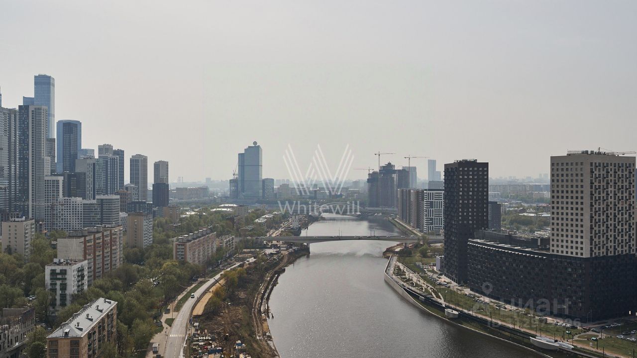 Планировка: просторная кухня-гостиная, мастер-спальня с собственной ванной, кабинет, санузел, гардеробная, прихожая. Окна ориентированы на две стороны, открываются виды на Москву-реку и в сторону делового центра "Москва-Сити".