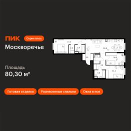 Продаётся 3-комн. квартира площадью 80,3 кв.м на 2 этаже 12 этажного дома (Корпус 1.4, Секция 5) проекта ПИК Москворечье. Светлый просторный подъезд на уровне земли, функциональная планировка, большие окна, c отделкой.