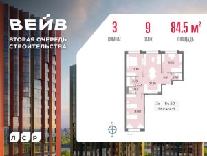 Продается 3-комнатная квартира общей площадью 84.5 кв. метров на 9 этаже жилого комплекса ВЕЙВ. Комплекс располагается на юге Москвы в районе Москворечье-Сабурово. В пешей доступности расположены станция МЦД "Москворечье" и станция метро "Борисово". Для автомобилистов есть удобное сообщение с Каширским шоссе.
