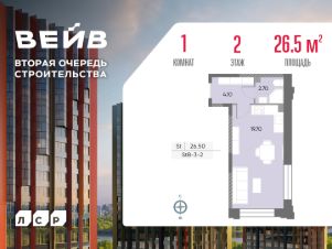 Продается квартира-студия общей площадью 26.5 кв. метров на 2 этаже жилого комплекса ВЕЙВ. Комплекс располагается на юге Москвы в районе Москворечье-Сабурово. В пешей доступности расположены станция МЦД "Москворечье" и станция метро "Борисово". Для автомобилистов есть удобное сообщение с Каширским шоссе.