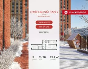 Продается 2-к квартира 79,2 кв.м. в ЖК "Семеновский парк 2" на 2-м этаже 18 этажного дома.