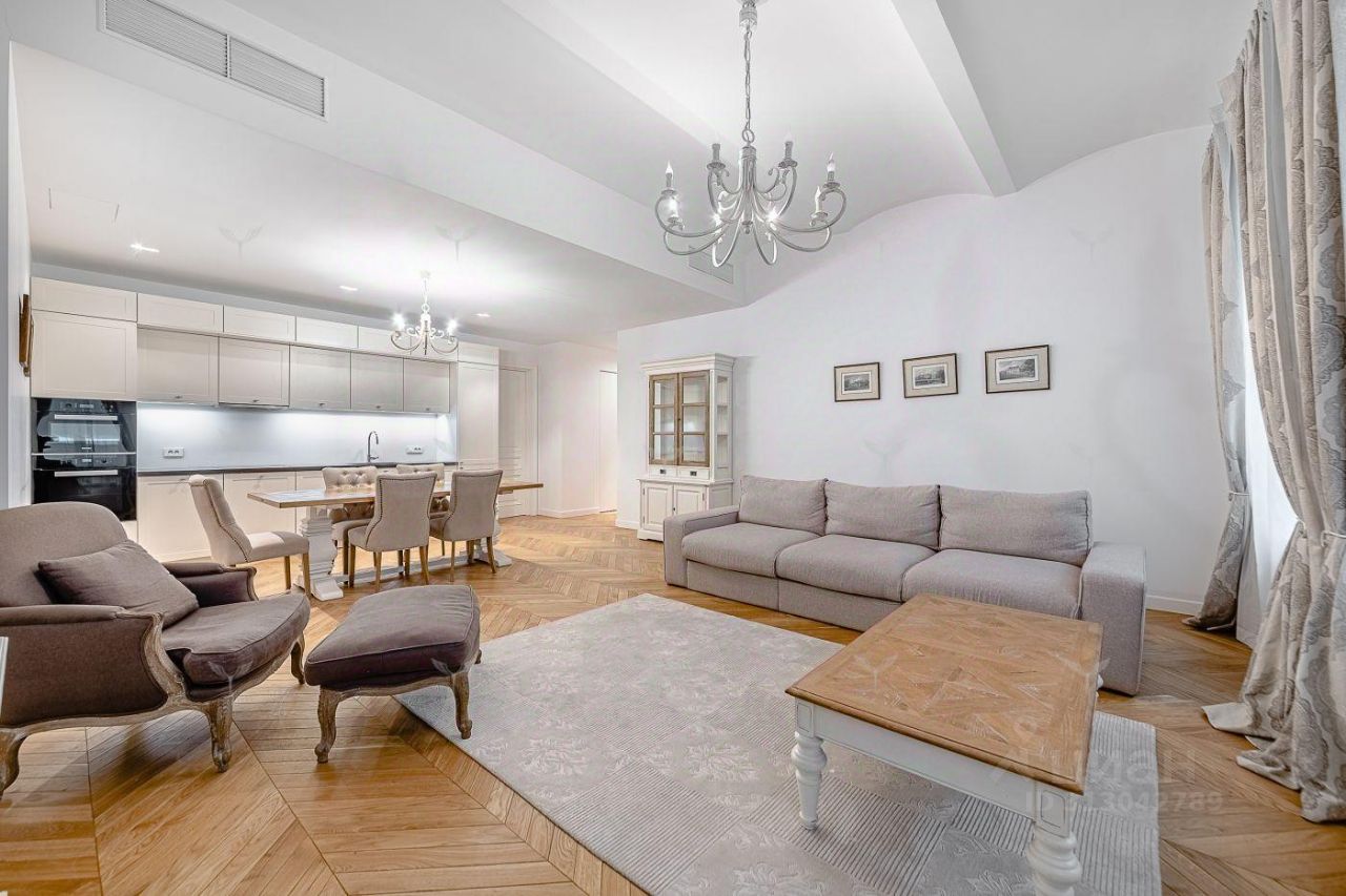 В апартаменте идеальный ремонт в стиле современной европейской классики. Использованы отделочные материалы класса люкс: натуральный камень, дорогой текстиль, паркет из ценных пород дерева.