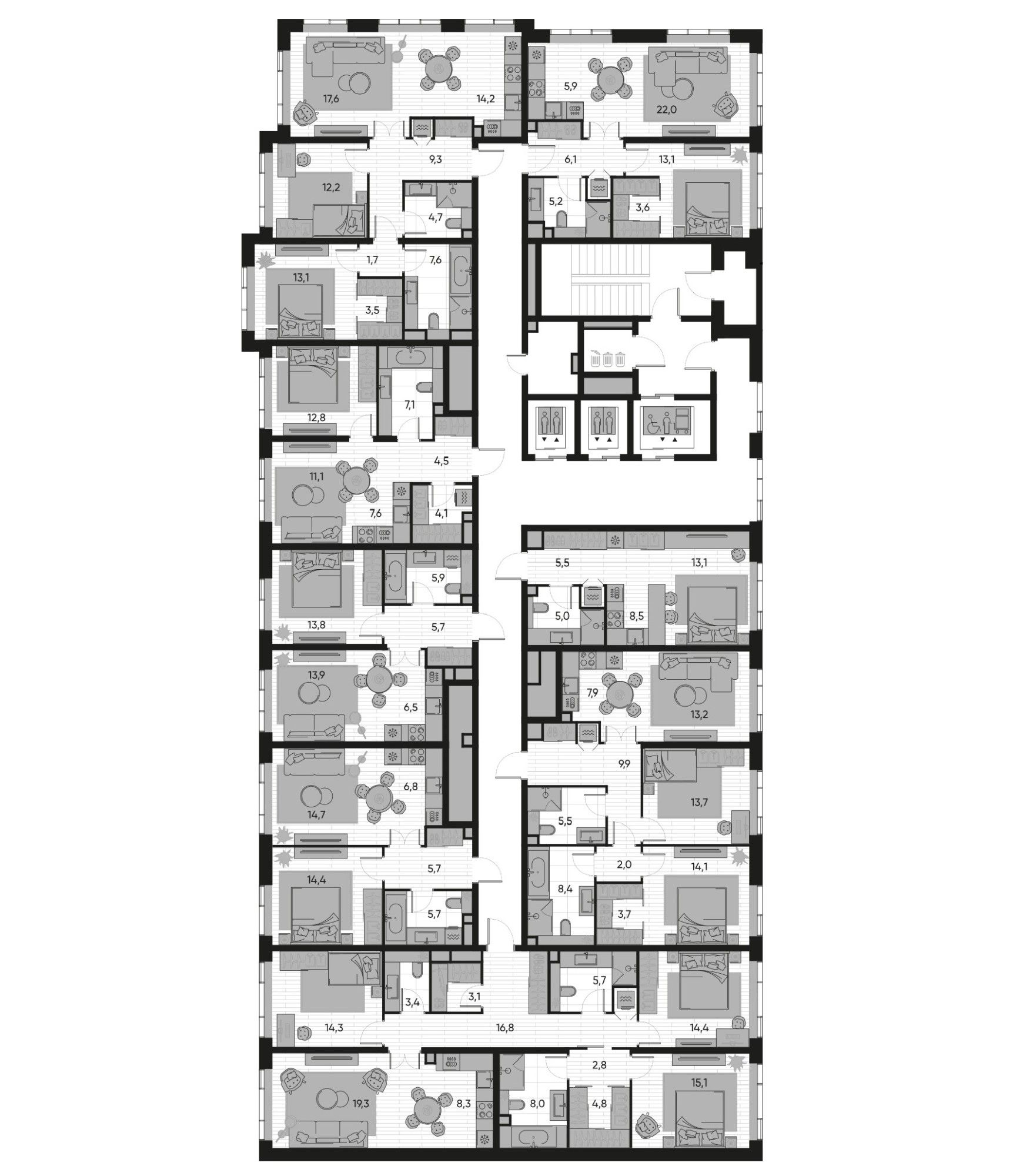 Яркая архитектура с переменной высотностью от 7 до 22 этажей от именитого бюро APEX формирует запоминающийся облик проекта.