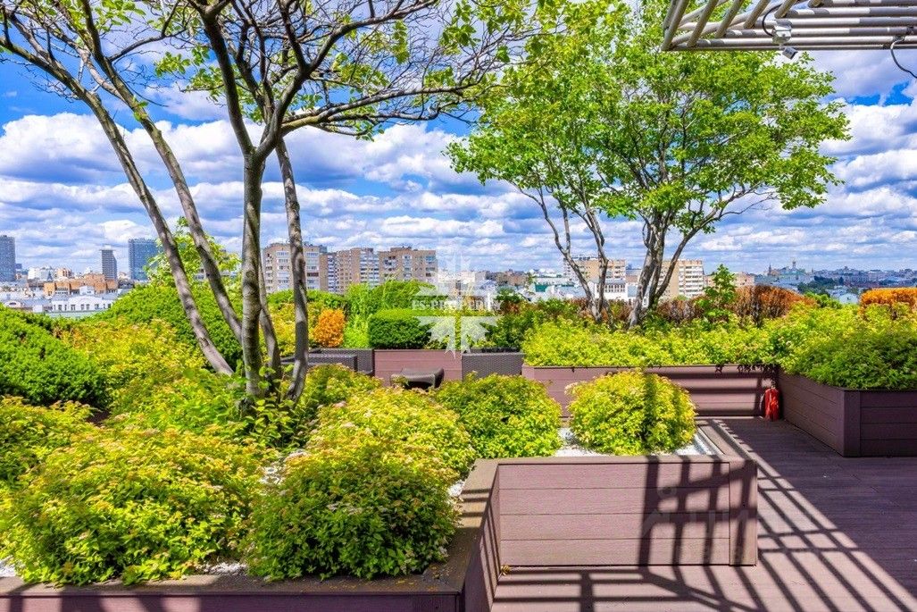 Панорамное остекление. Уникальная терраса по периметру всей квартиры с садом и лаундж зоной. Исключительные виды на центр Москвы.