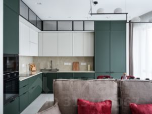 Просторная кухня-гостиная со встроенной техникой Kuppersberg.