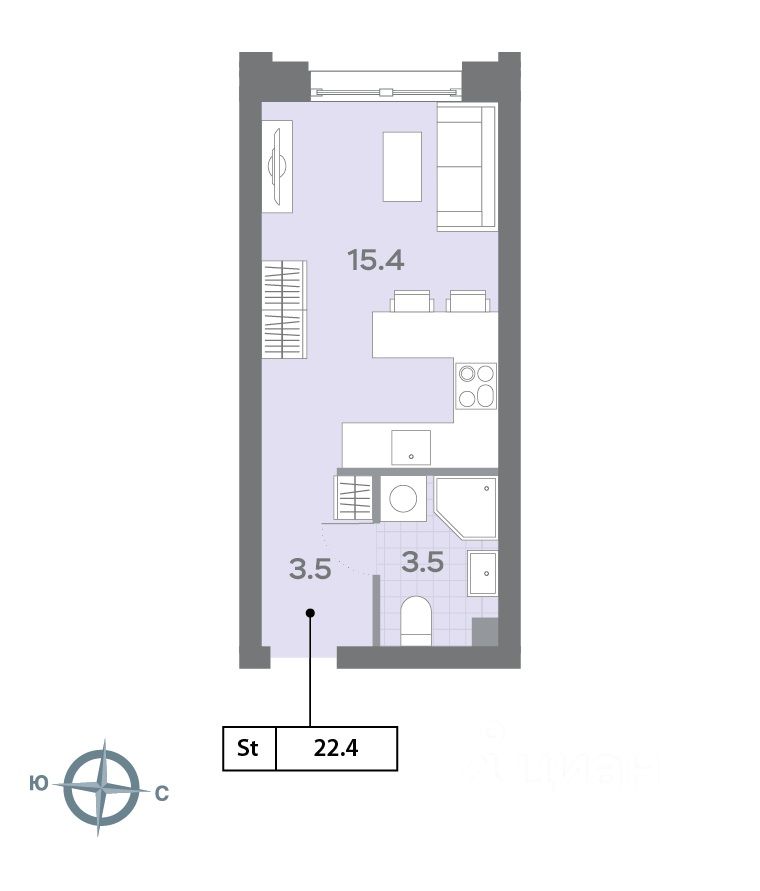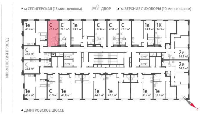 Придаётся студия, 7 этаж, площадь 22,4 м² в новом ЖК Дмитровское небо .