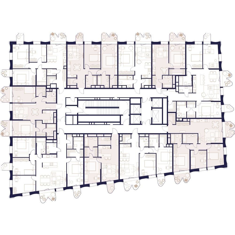 Уникальные форматы квартир с мастер-спальнями, приватными террасами, балконами, а также пентхаусы с открыточными видами на город.