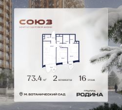 Продаётся 2-комнатная квартира площадью 73.4 м² на 16 этаже в Жилом Комплексе "Союз".