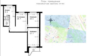 Трёхкомнатная квартира площадью 72 квадратных метров на улице Шверника, дом 17 корпус 3, подъезд 4. Квартира расположена на 9 этаже 16-этажного панельного дома 1984 года.