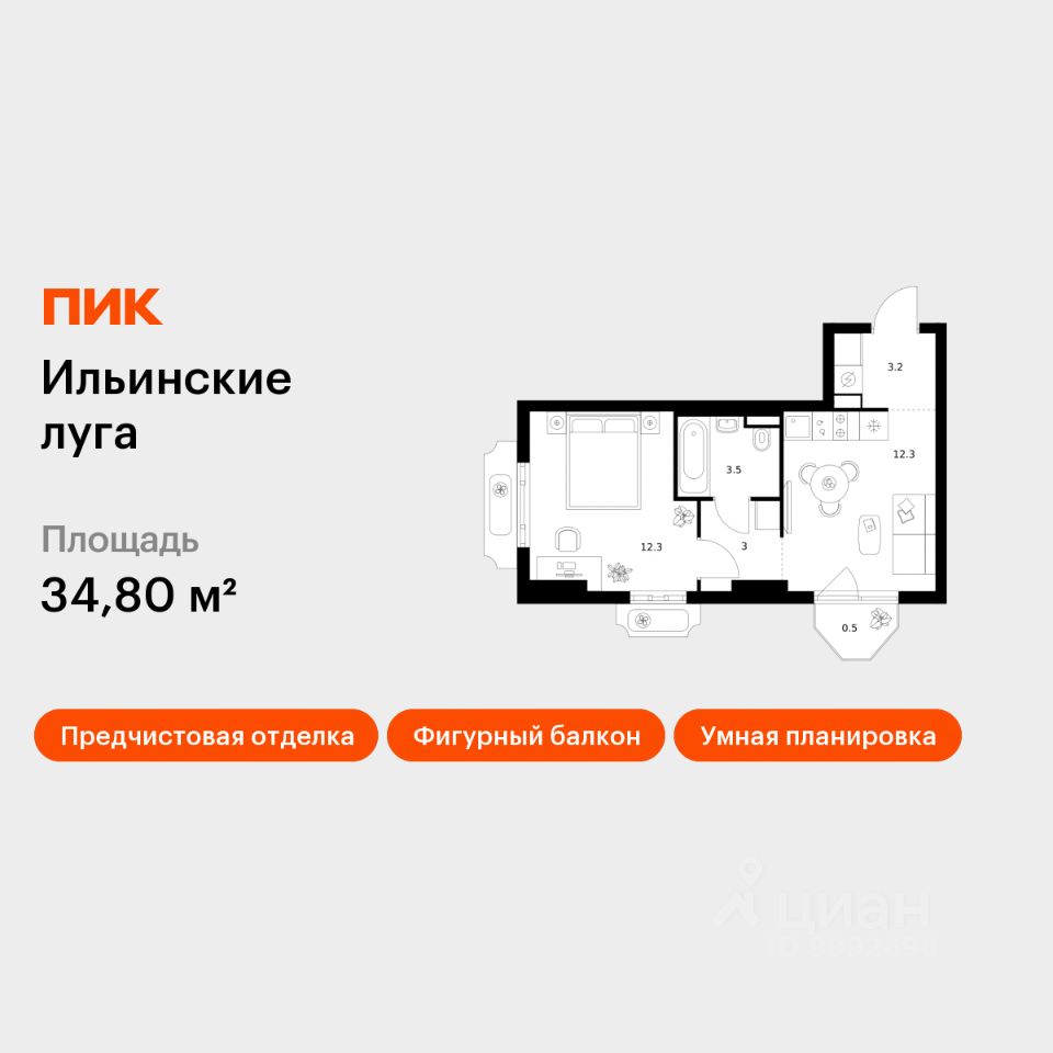 Продаётся 1-комн. квартира площадью 34,8 кв.м на 2 этаже 9 этажного дома (Корпус 3.5, Секция 1) проекта ПИК Ильинские луга. Светлый просторный подъезд на уровне земли, функциональная планировка, большие окна, предчистовая отделка.
