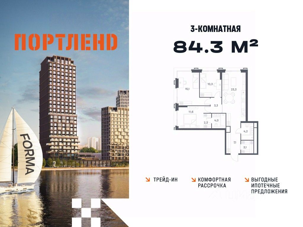 Продаётся 3-к. квартира, 26 этаж в жилом комплексе бизнес-класса ПОРТЛЕНД от девелопера FORMA. ЖК расположен на берегу Москвы-реки в северной части района Печатники в акватории Южного речного порта.