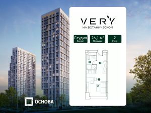 Продается студия площадью 26.1 кв.м. на 2-м этаже 31 этажного дома в ЖК "Very" от ГК ОСНОВА.