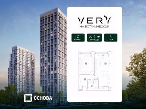 Продается 2-к квартира площадью 50.4 кв.м. на 4-м этаже 31 этажного дома в ЖК "Very" от ГК ОСНОВА.