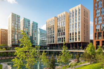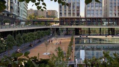 Главное о доме. "Садовые кварталы" — городской ансамбль с собственным парком, бульварами и дворами без машин в Хамовниках. Архитектура держится на светлом камне, крупном остеклении и спокойных вертикалях; разные по высоте корпуса формируют чёткий городской рельеф. Входные группы напоминают лобби хорошей гостиницы: натуральные материалы, высокий потолок, стойки ресепшн и мягкие зоны. На территории работают клубные пространства и семейная инфраструктура, внутри квартала открыт World Class. Вечером дворики читаются камерно благодаря мягкой подсветке. Паркинг под корпусами связан с лобби лифтами.