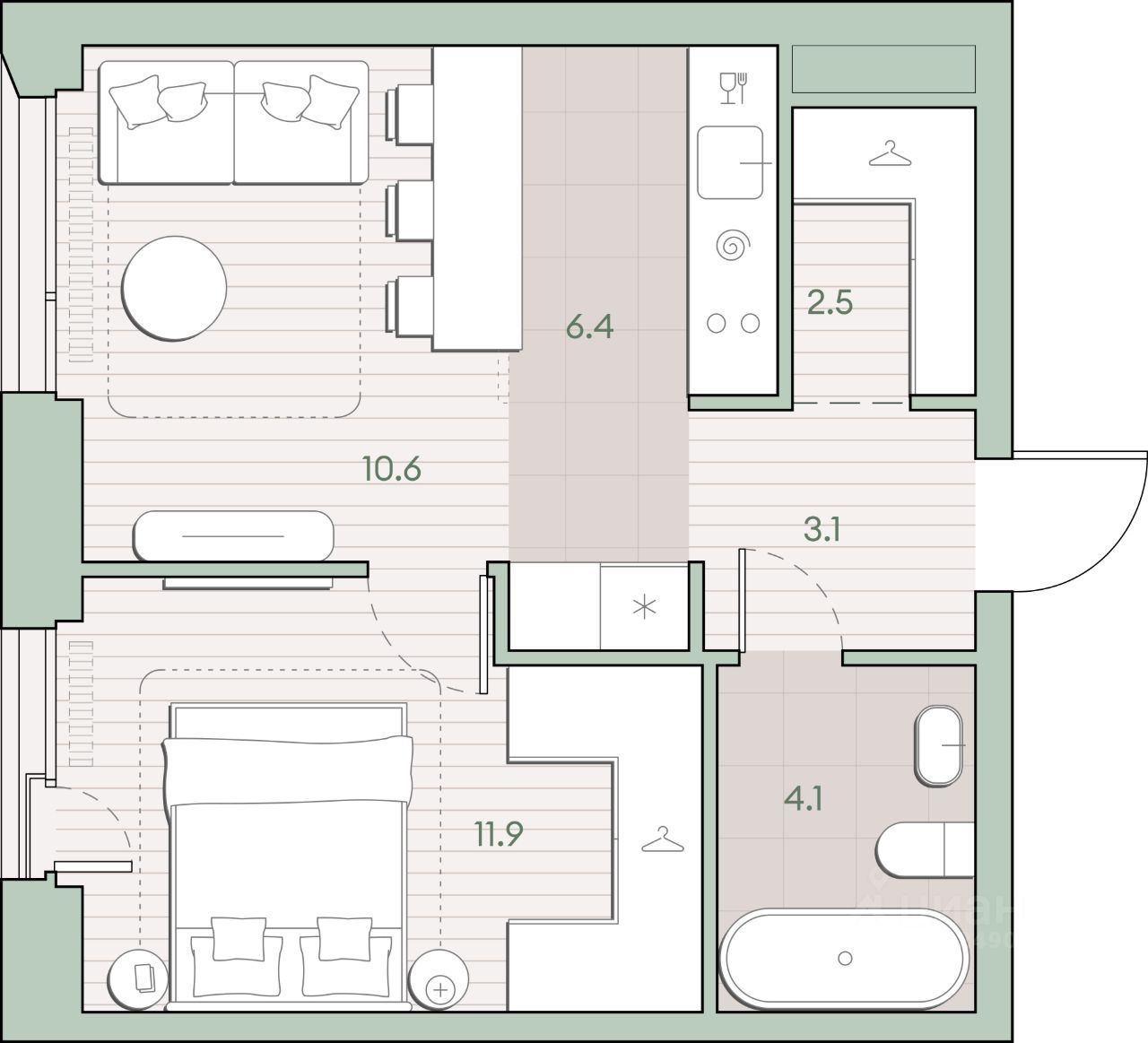 Продаётся 1-комнатная квартира общей площадью 38.6 кв.м. с отделкой white box. Квартира расположена на 2 этаже корпуса 5.4 в жилом комплексе бизнес-класса "Среда на Лобачевского" в пешей доступности от метро "Аминьевская".