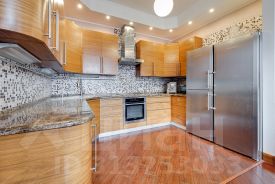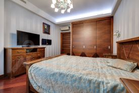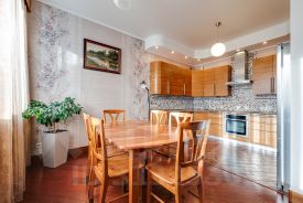 В квартире выполнен дизайнерский ремонт с использованием дорогих натуральных материалов. Квартира оборудована техникой BOSH, LIEBHERR, PIONER, KLIPRSCH, BANG AND OLUFSEN. Просторная планировка включает четыре комнаты и два совмещенных санузла. Из окон открываются виды на улицу и во двор, что обеспечивает хорошее естественное освещение в течение всего дня.