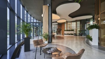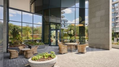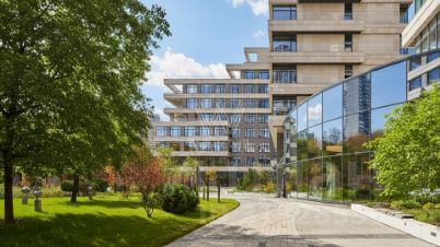 Главное о доме. "Река" — премиальный комплекс в Раменках, созданный бюро LDA Design и UHA London. Два корпуса на 115 квартир облицованы натуральным камнем и металлом, а панорамные окна высотой до 4 метров выпускают виды на реку и зелёные массивы. В квартирах предусмотрены зимние сады, террасы и камины, а верхние уровни заняли просторные пентхаусы. Внутренний двор оформлен как приватный сад с лаунж-зонами, игровыми площадками и выходом прямо к набережной Раменки. Для удобства жителей работают фитнес, ресторан, супермаркет и сервисные службы, а подземный паркинг оборудован зарядками для электромобилей.